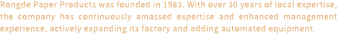 榮德紙器創立於民國72年。在地深耕40多年不斷地累積專業技術,提升管理經驗,積極擴充廠房及新增自動化設備。